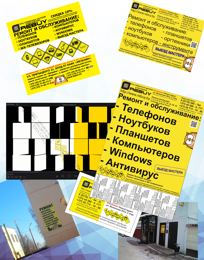 В период с 2014 по 2015 год в нашей компании была успешно завершена разработка полного комплекта маркетинговых материалов для сети сервисных центров, специализирующихся на ремонте цифровой техники.